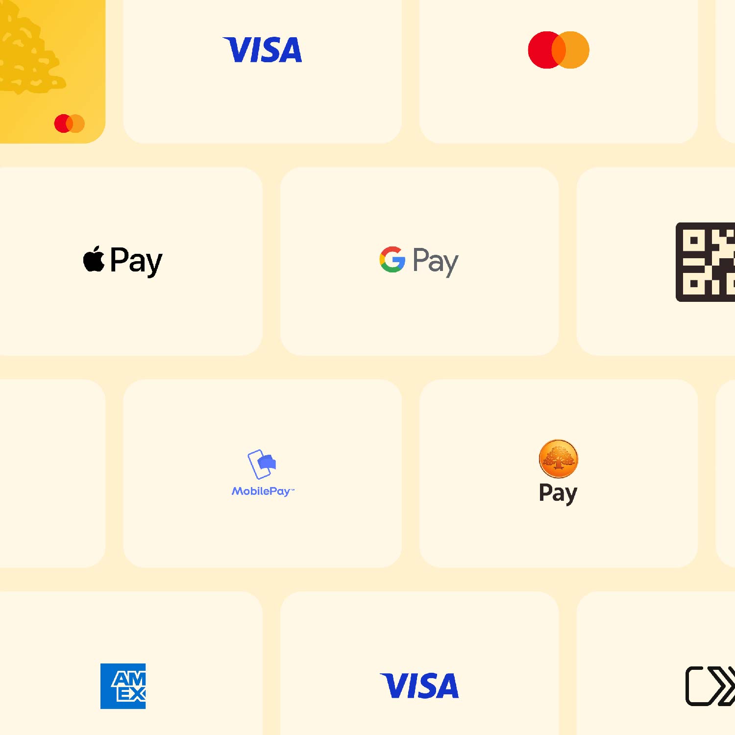 Vi tilbyder et bredt udvalg af betalingsmetoder, som du kan tilpasse efter dine behov – vi hjælper dig selvfølgelig med at aktivere flere, hvis du ønsker det.